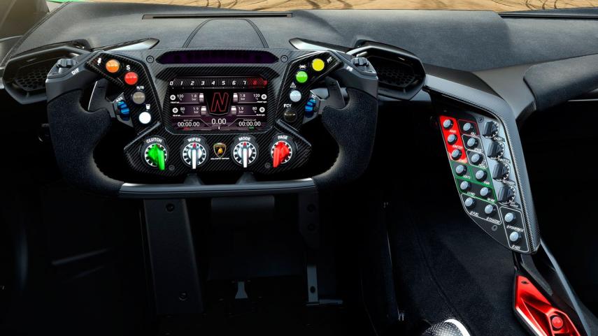Será el Lamborghini más radical, probablemente de toda la historia, con un comportamiento que se ha desarrollado para ser súper eficaz en la pista. Otro de los factores determinantes es su chasis monocasco de carbono, inédito en Lamborghini y que podría poner las bases del desarrollo del futuro superdeportivo de la firma italiana, el sustituto del Lamborghini Aventador. Monta llantas de 19 y 20 pulgadas, un elemento que cuenta con neumáticos de tipo slick firmados por Pirelli.